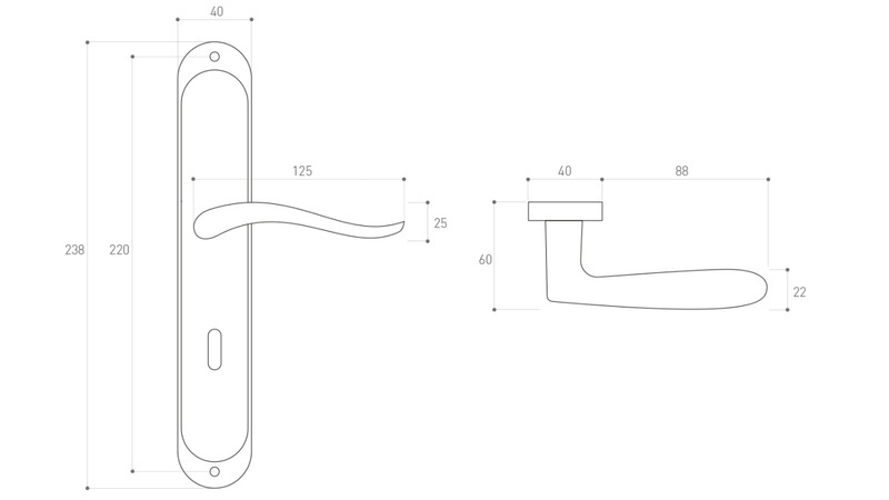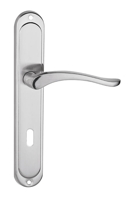 Klamka Nicole to połączenie klasyki oraz stylu retro. Charakteryzuje się elegancją oraz lekko wygiętą rękojeścią co wpływa na jej ergonomię. Klamki w wersji na długim szyldzie oferowane są w rozmiarach standardowych; 72 mm i 90 mm oraz przebiciach; na klucz, na wkładkę, WC ( łazienkowe ) oraz bez przebicia. Produkt dostępny jest w dwóch modnych kolorach: nikiel szczotkowany / patyna.