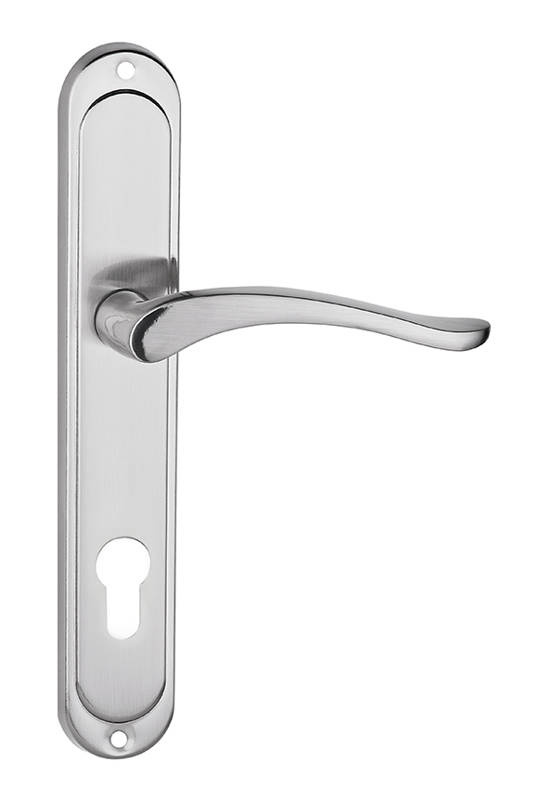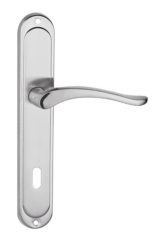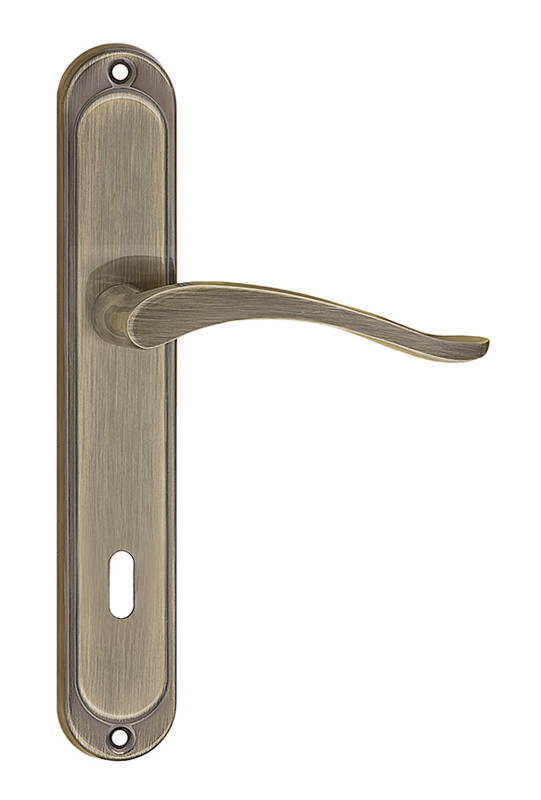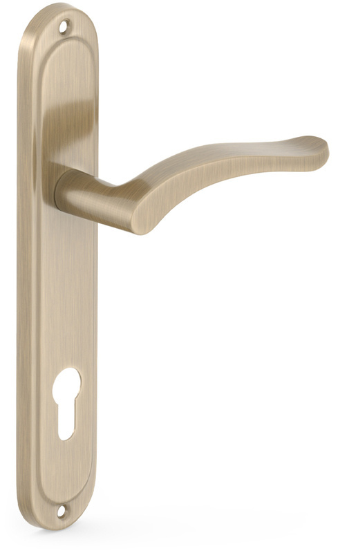 Klamka Nicole to połączenie klasyki oraz stylu retro. Charakteryzuje się elegancją oraz lekko wygiętą rękojeścią co wpływa na jej ergonomię. Klamki w wersji na długim szyldzie oferowane są w rozmiarach standardowych: 72 mm i 90 mm oraz przebiciach: na klucz, na wkładkę, WC ( łazienkowe ) oraz bez przebicia. Produkt dostępny jest w dwóch modnych kolorach: nikiel szczotkowany / patyna.