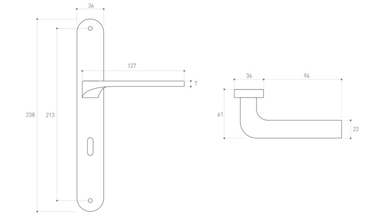 Klasyczna elegancja oraz minimalistyczne, ale ciekawe spłaszczenie na rękojeści to cechy charakterystyczne kolekcji FEBE. Klamka znalazła uznanie wśród projektantów zarówno do nowoczesnych oraz klasycznych wnętrz. Klamki w wersji na długim szyldzie oferowane są w rozmiarach standardowych: 72 mm i 90 mm oraz przebiciach: na klucz, na wkładkę, WC ( łazienkowe ) oraz bez przebicia.