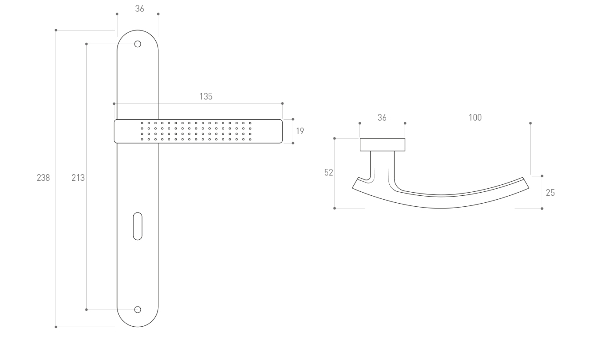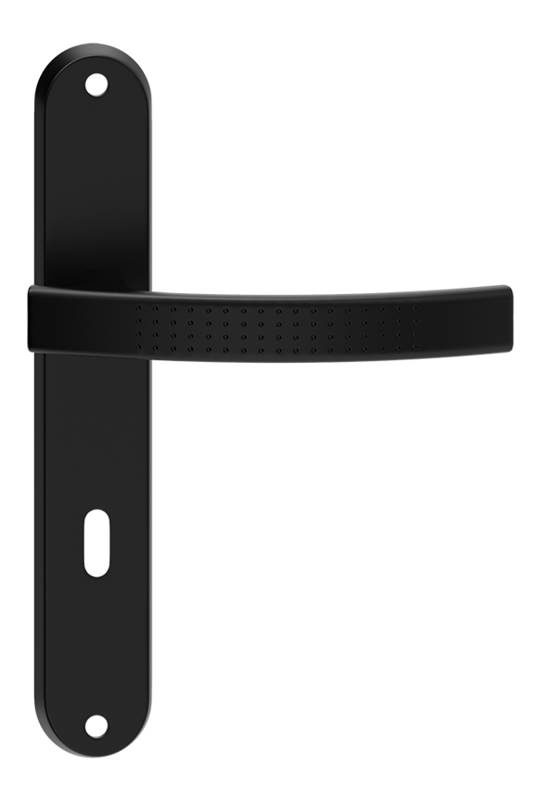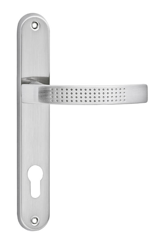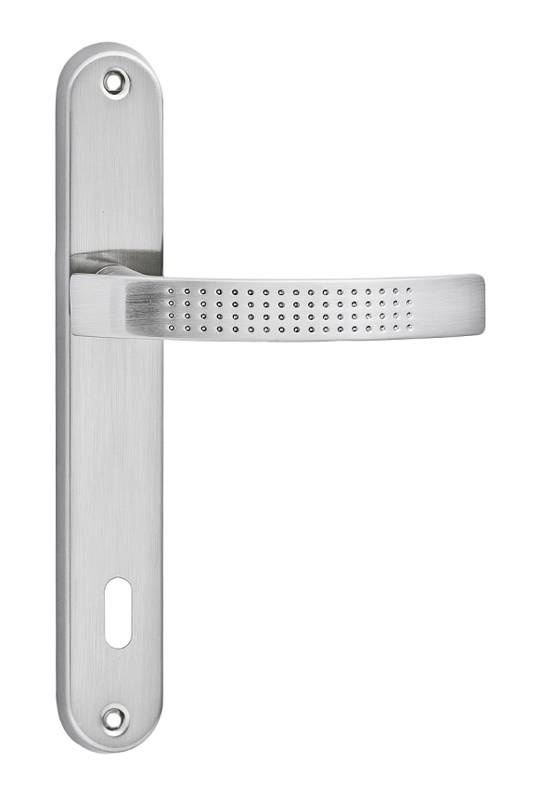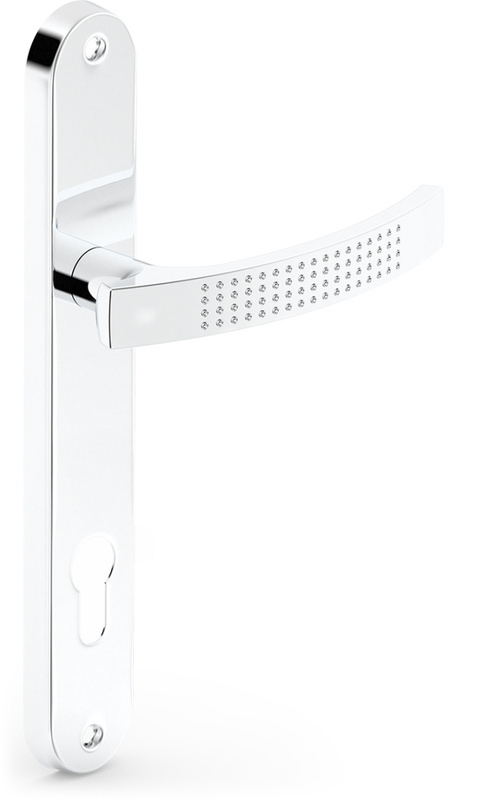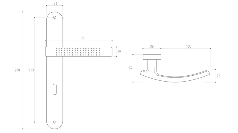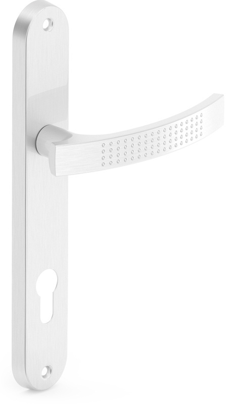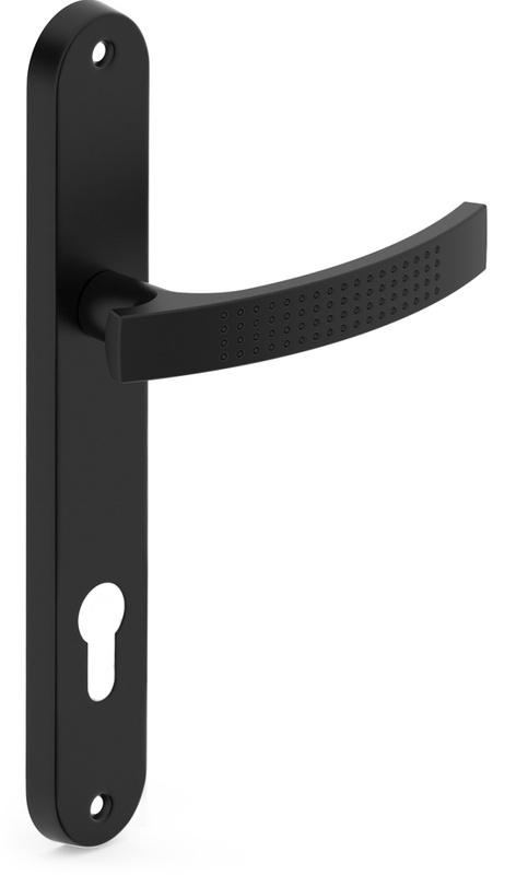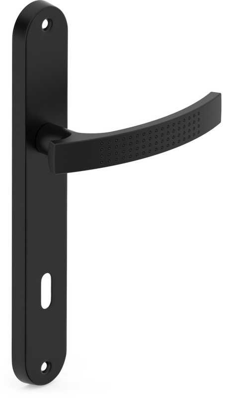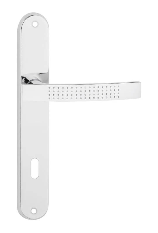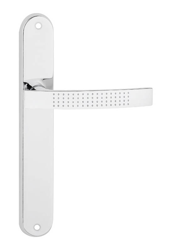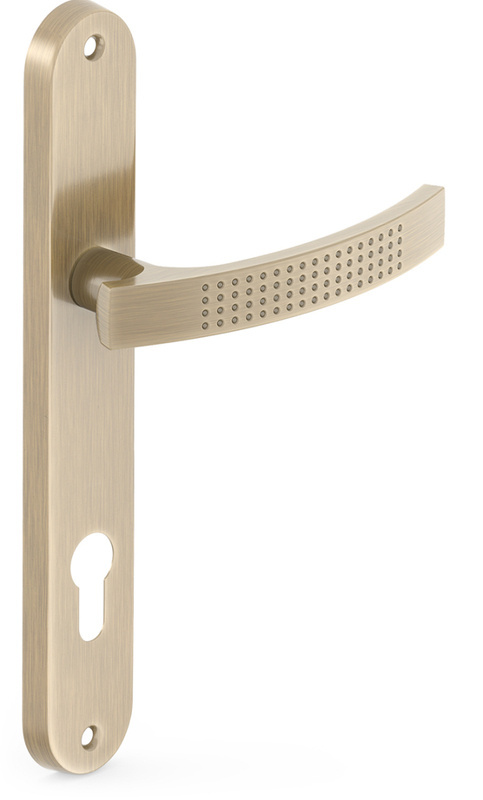 Klamka Astra posiada ciekawe zdobienie na rękojeści, a jej dodatkowym atutem jest naturalnie wygięcie, które decyduje o komforcie podczas codziennego użytkowania. Klamki w wersji na długim szyldzie oferowane są w rozmiarach standardowych: 72 mm i 90 mm oraz przebiciach: na klucz, na wkładkę, WC ( łazienkowe ) oraz bez przebicia. Produkt dostępny jest w gamie czterech modnych kolorów: nikiel szczotkowany, patyna, chrom błyszczący, czarny.