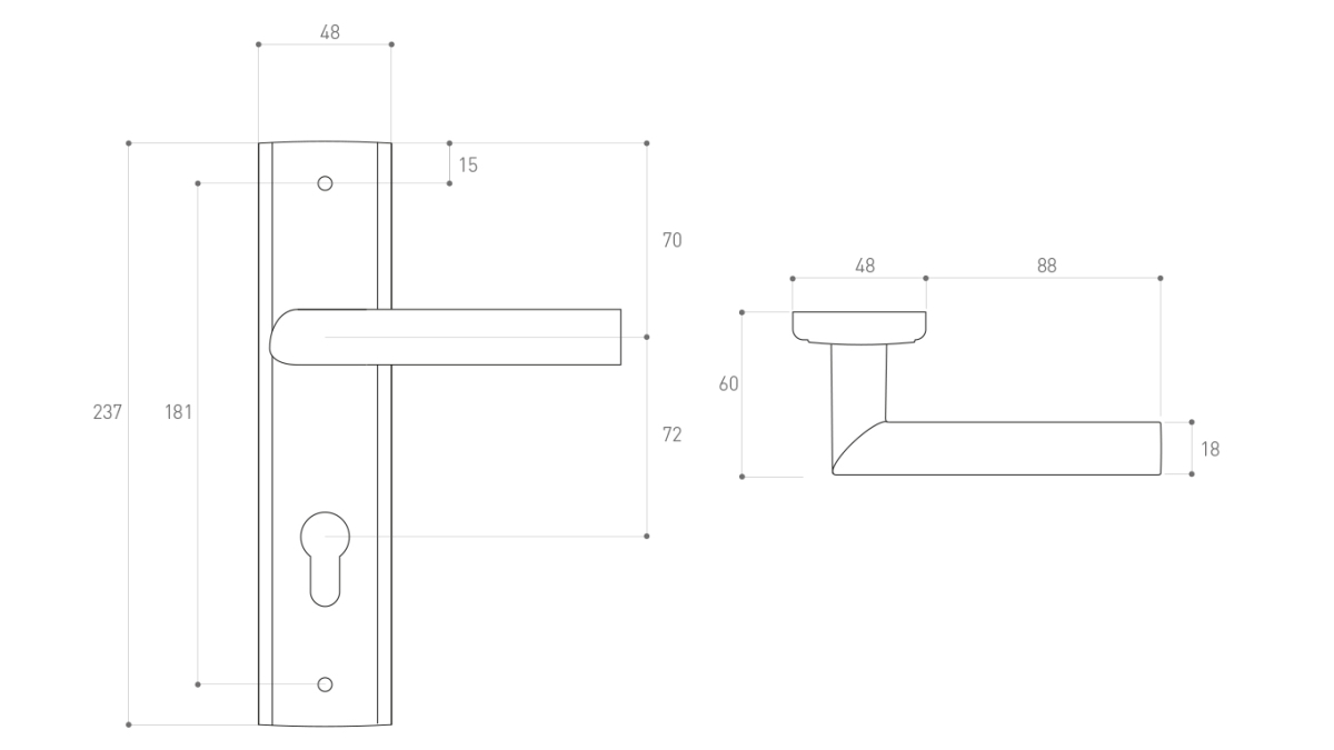- Zewnętrzna / wewnątrz klatkowa klamka drzwiowa na szyldzie długim
