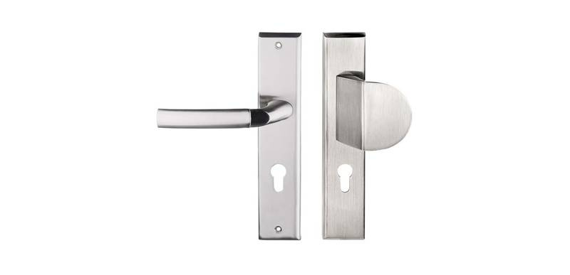 • Zewnętrzny / wewnątrz klatkowy klamko-pochwyt drzwiowy na szyldzie długim