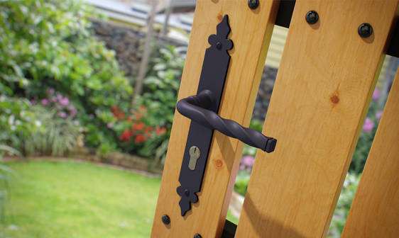 • Zewnętrzna klamka bramowa na szyldzie długim