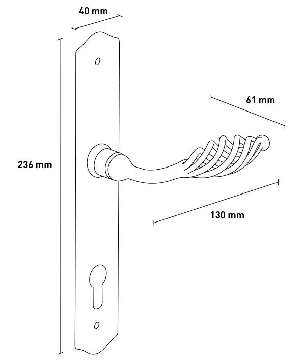 - Zewnętrzna klamka bramowa na szyldzie długim