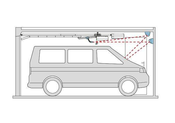 Wspomaga kierowcę w idealnym ustawieniu pojazdu w garażu. Laser jest aktywny podczas otwierania bramy oraz w czasie, gdy wózek jezdny oświetla pomieszczenie.