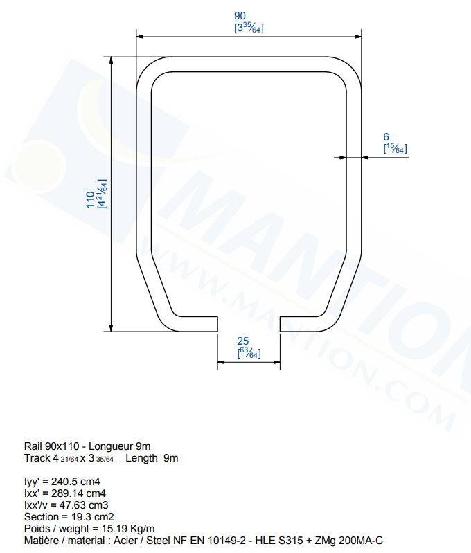 - Szyna nośna 110x90 mm, ocynk galwaniczny.