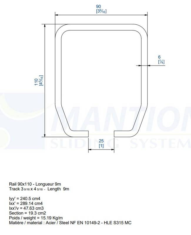 Szyna nośna MANTION HERCULE 9070N, stal czarna