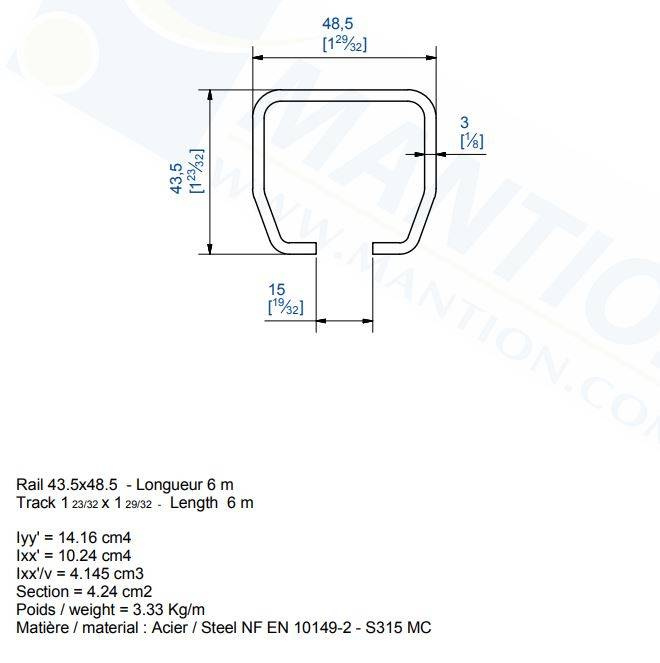 Szyna nośna MANTION HERCULE 9040N, stal czarna