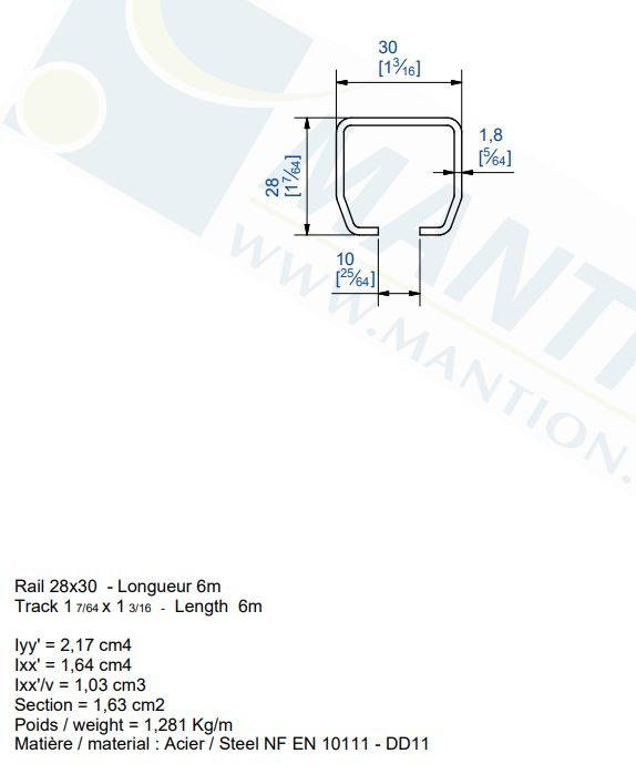 Szyna nośna MANTION HERCULE 9010N, stal czarna