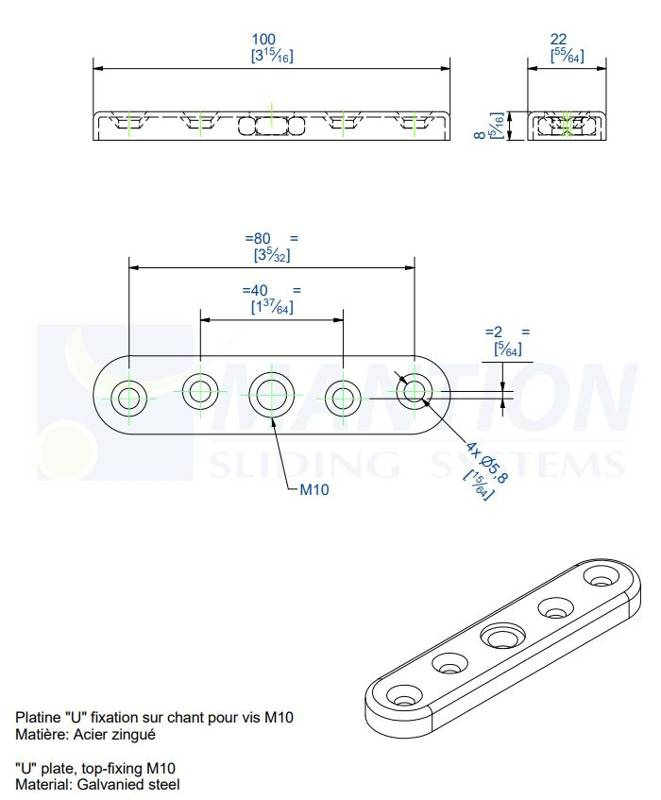Płytka montażowa U-kształtna do skrzydeł drewnianych MANTION 0036W, ocynk