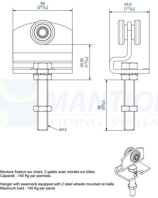 Dzięki wózkowi MANTION 9231W, transport podwieszany staje się znacznie bardziej efektywny. Wózek ten jest łatwy w obsłudze i zapewnia płynne poruszanie się po prowadnicach, co przyspiesza proces przemieszczania towarów. Maksymalny udźwig wynoszący 140 kg pozwala na przenoszenie nawet cięższych przedmiotów.