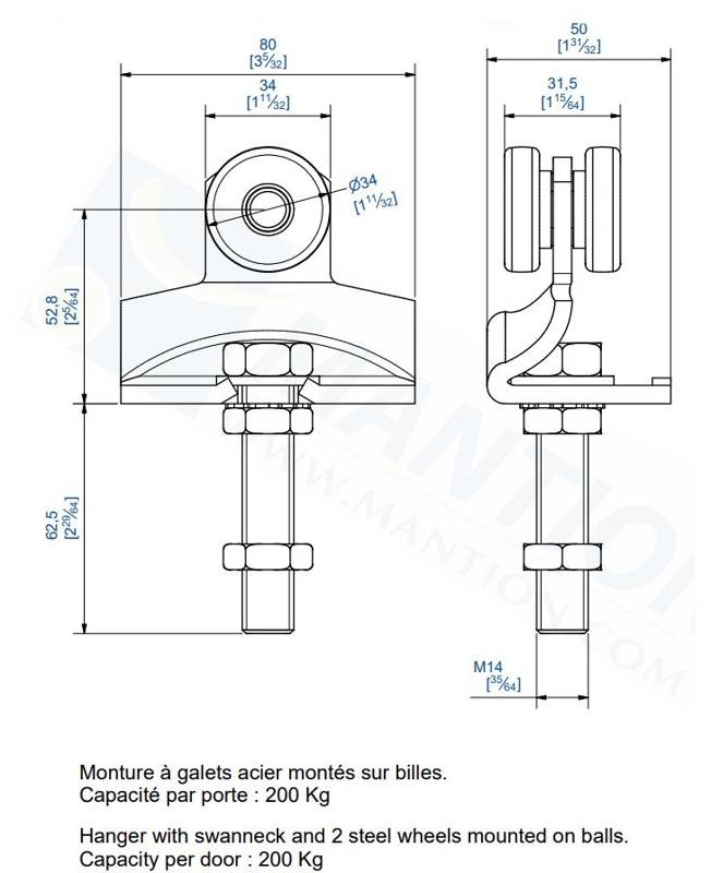 - Maksymalna waga skrzydła (2 wózki) 200 kg.