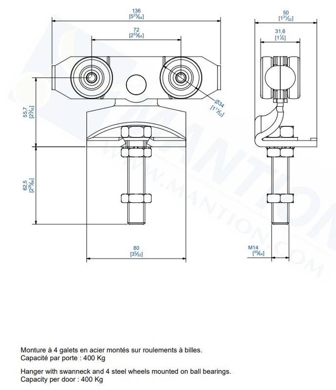 MANTION 9242S to wózek 4-kołowy wykonany z ocynku, co zapewnia odporność na korozję i długą żywotność. Dzięki temu, transport podwieszany HERCULE 9040 jest niezawodny nawet w trudnych warunkach.