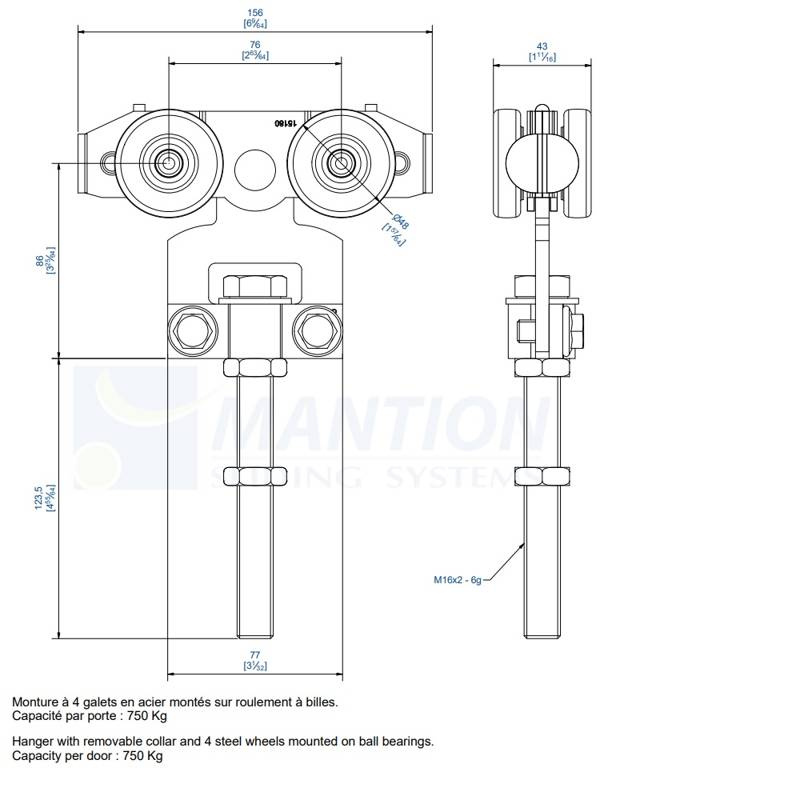 - Maksymalna waga skrzydła (2 wózki) 750 kg.