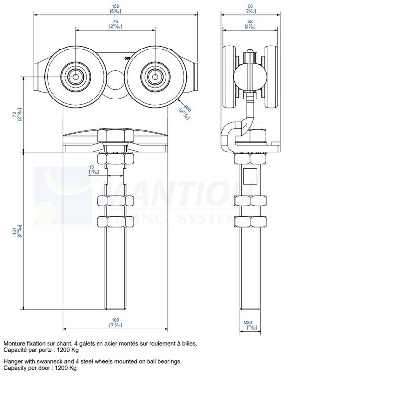 - Maksymalna waga skrzydła (2 wózki) 1200 kg.