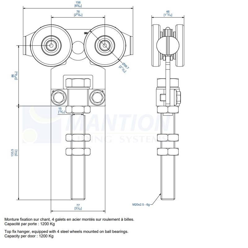 - Maksymalna waga skrzydła (2 wózki) 1200 kg.