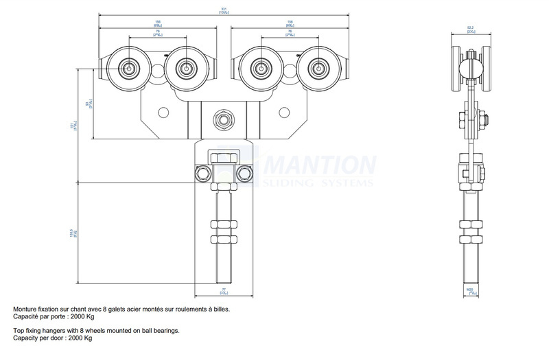 • Maksymalna waga skrzydła (2 wózki) 2000 kg.