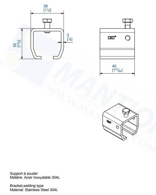 Uchwyt sufitowy do wspawania MANTION 9018XA2, stal nierdzewna AISI 304