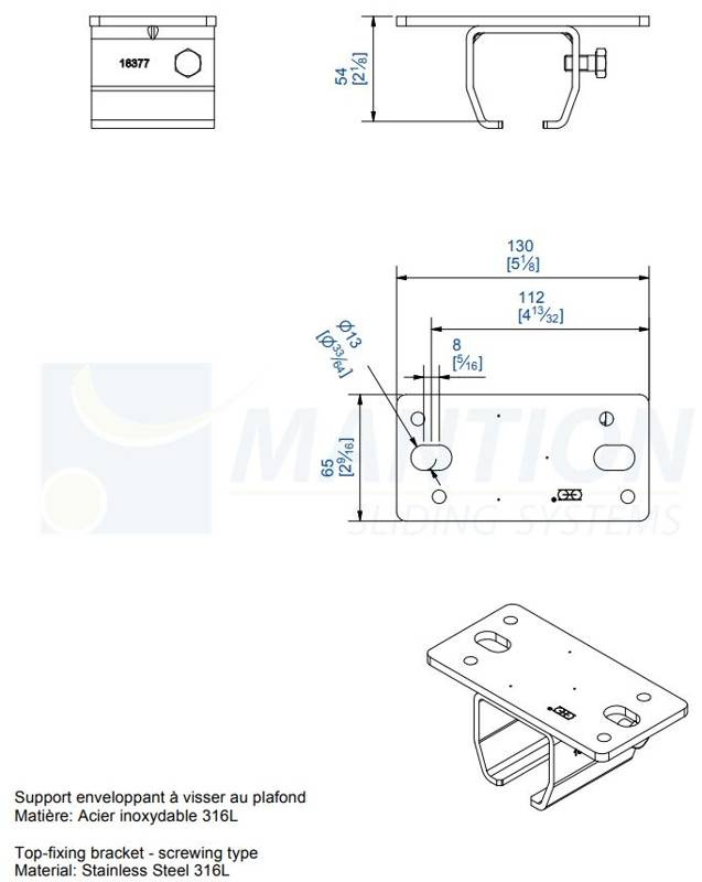 Uchwyt sufitowy MANTION 9048HXA4, stal kwasoodporna AISI 316