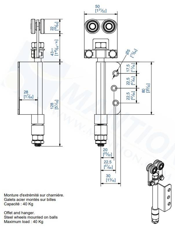 - Wózek początkowy do drzwi łamanych (narożnikowych) z kątownikiem.