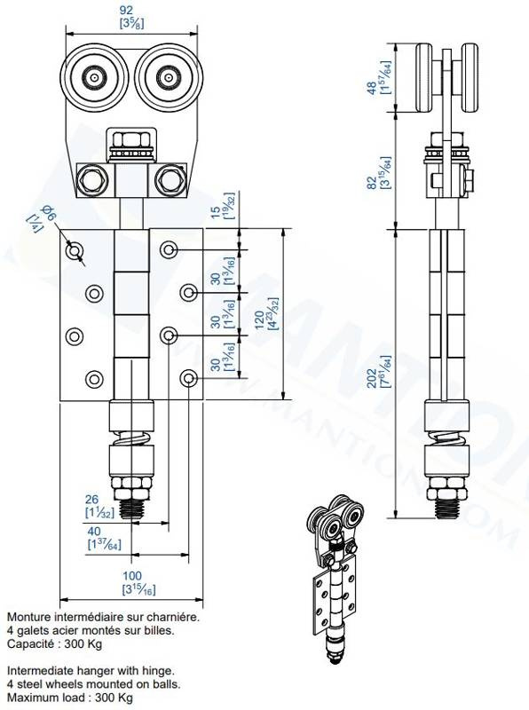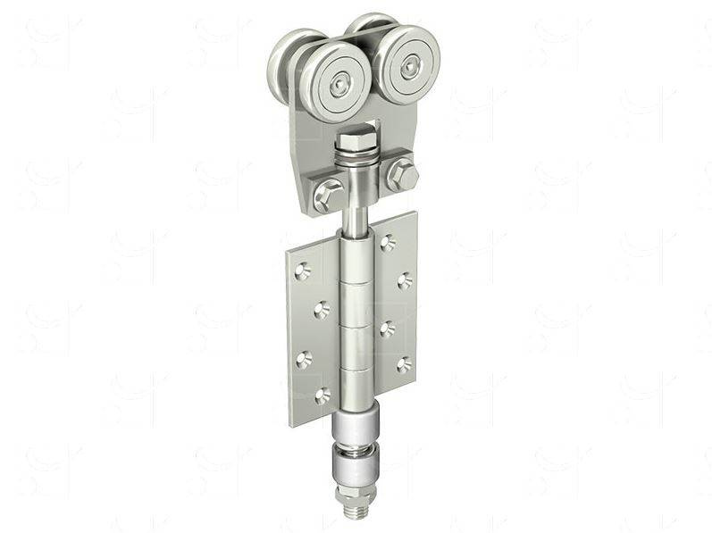 - Wózek pośredni do drzwi łamanych (narożnikowych) z zawiasem.