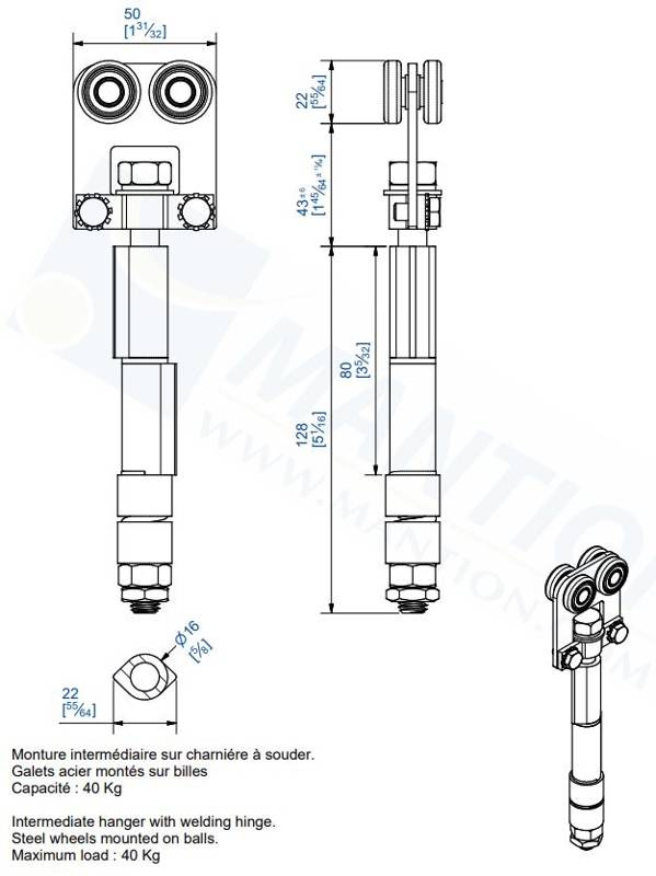 Wózek 4-kołowy do wspawania MANTION 9312SO, ocynk