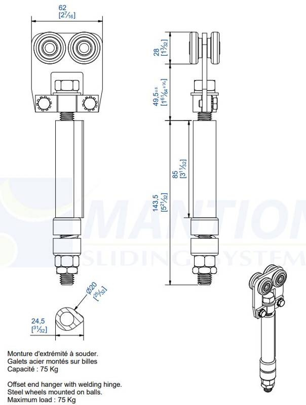 - Wózek początkowy do drzwi łamanych (narożnikowych) z pół-zawiasem.