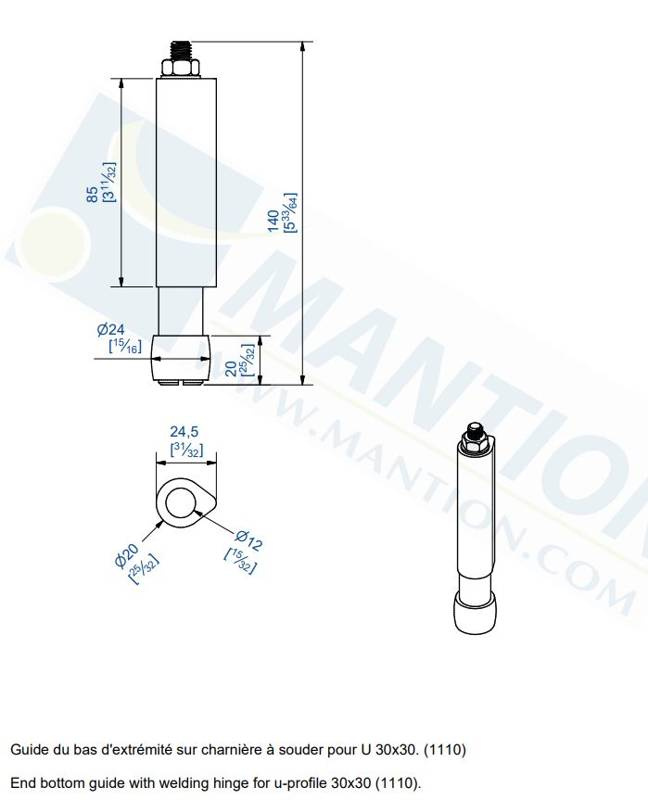 Prowadnik dolny do wspawania MANTION 1105SOE, ocynk