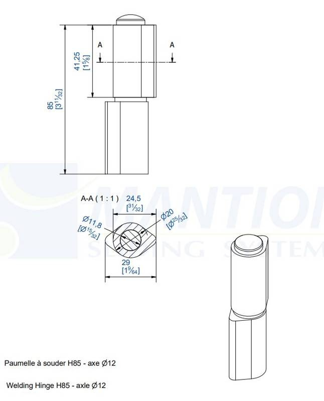 Zawias do wspawania MANTION 1512SO, Ø12 mm, stal czarna
