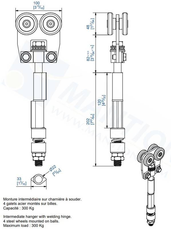 - Wózek pośredni do drzwi łamanych (narożnikowych) z zawiasem.