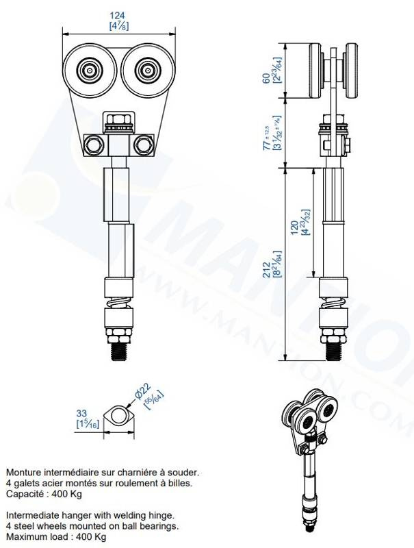 Wózek 4-kołowy do wspawania MANTION 9362SO, ocynk to solidne i wytrzymałe rozwiązanie do transportu podwieszanego. Dzięki nośności do 400 kg, wózek ten doskonale sprawdza się w przenoszeniu ciężkich ładunków w różnego rodzaju zakładach produkcyjnych, magazynach czy halach przemysłowych.