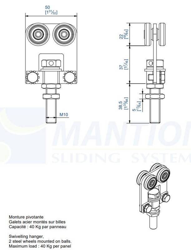 Systemy podwieszane MANTION to gwarancja solidności i bezpieczeństwa w transporcie ciężkich przedmiotów. Wózek 4-kołowy z obrotową śrubą MANTION 9613, ocynk jest niezastąpionym elementem systemu transportu podwieszanego HERCULE 9010, który jest w stanie udźwignąć aż 90 kg.