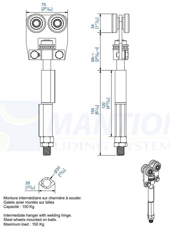 Wózek 4-kołowy do wspawania MANTION 9542SO, ocynk