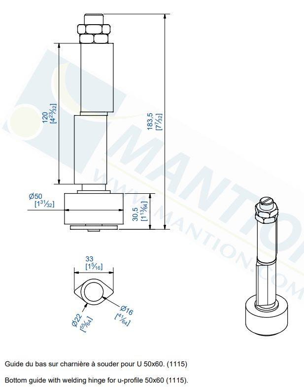 Prowadnik dolny do wspawania MANTION 1114SO, ocynk