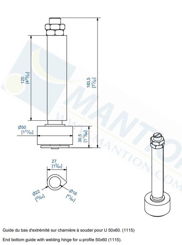 Prowadnik dolny do wspawania MANTION 1114SOE, ocynk