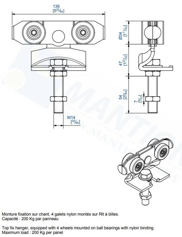 - Maksymalna waga skrzydła (2 wózki) 200 kg.
