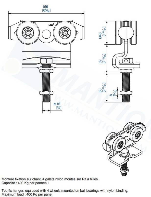 - Maksymalna waga skrzydła (2 wózki) 400 kg.