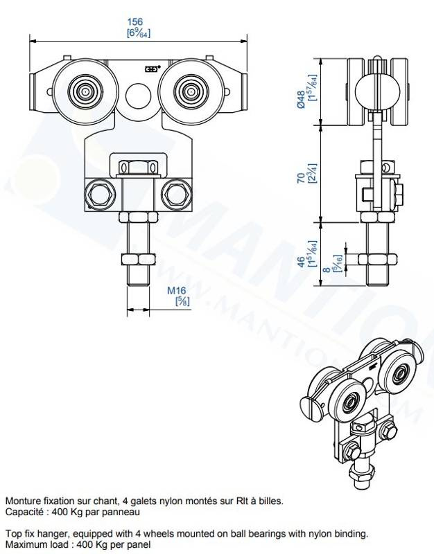• Maksymalna waga skrzydła (2 wózki) 400 kg.