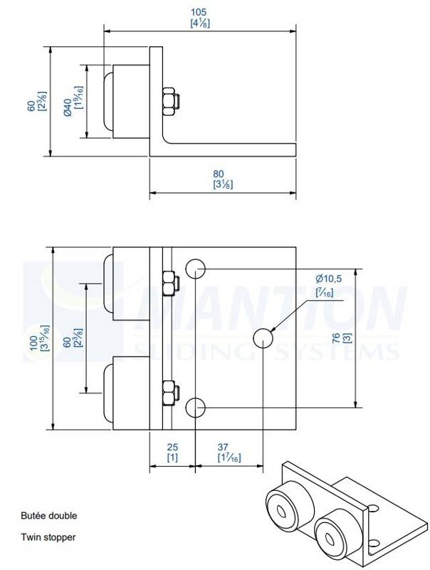 - Naścienny, podwójny stoper skrzydła drzwiowego / bramowego.