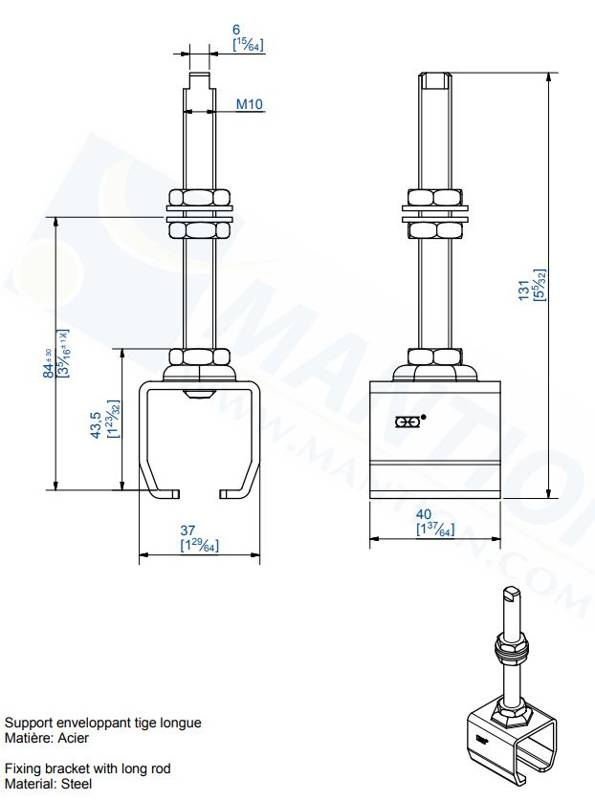 Regulowany uchwyt sufitowy MANTION 9011L, ocynk