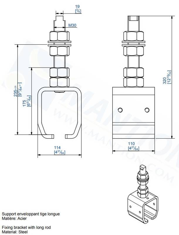 Regulowany uchwyt sufitowy MANTION 9071L, ocynk - idealny do transportu podwieszanego
