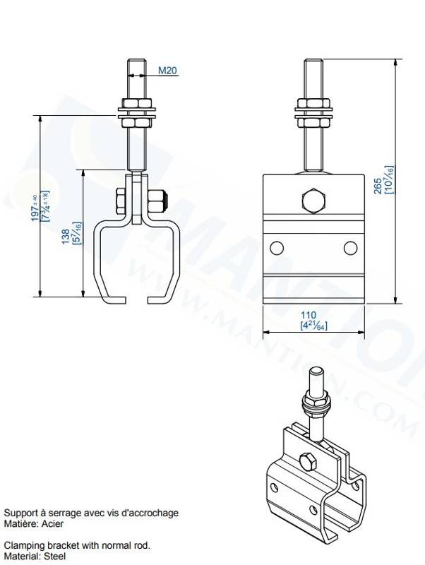 - Mocowanie sufitowe - trzpień M20.