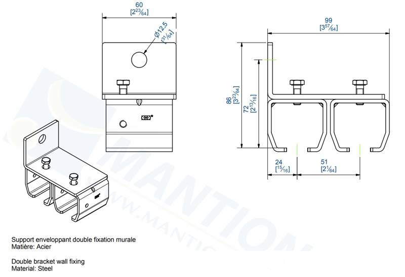 Podwójny uchwyt ścienny MANTION 9038V2, ocynk