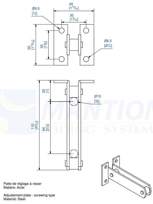 Podwójny regulowany uchwyt ścienny do przykręcenia MANTION 3536, ocynk