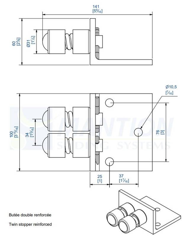 - Wzmocniony podwójny, sprężynowany stoper skrzydła drzwiowego / bramowego.