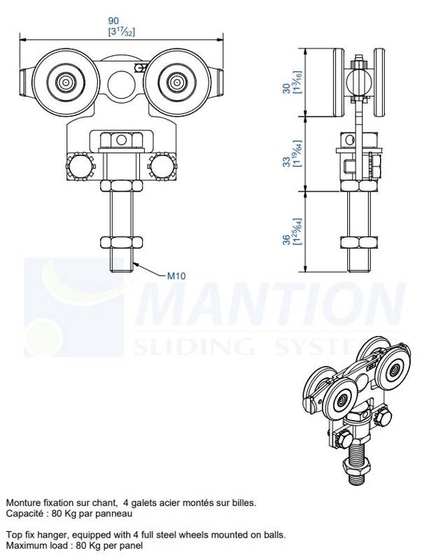 Wózek 4-kołowy MANTION 2235, ocynk - produkt MANTION do bram przemysłowych