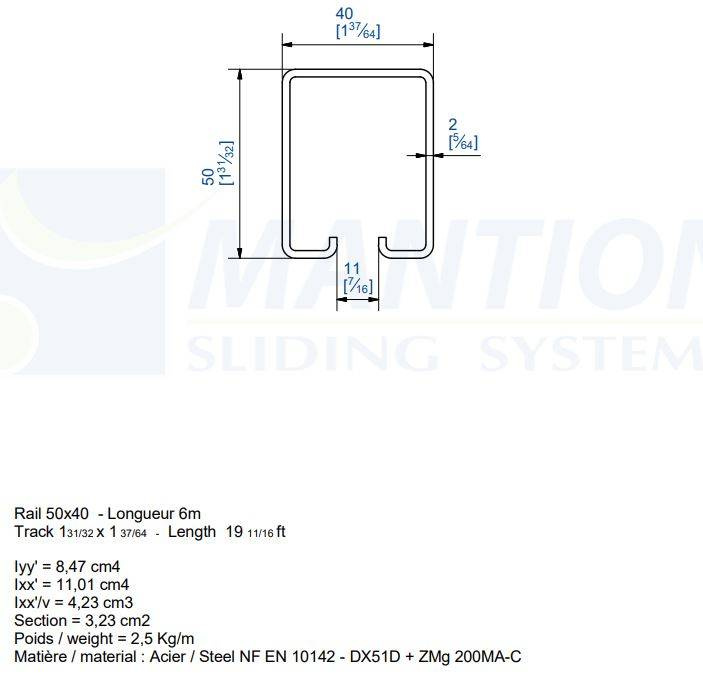 Szyna nośna MANTION SPORTUB 5040, ocynk jest niezawodnym rozwiązaniem do podwieszania bram przemysłowych, okiennic, systemów do drzwi harmonijkowych oraz innych elementów przemysłowych. Dzięki wysokiej jakości materiałom i solidnej konstrukcji, zapewnia stabilność i wytrzymałość.