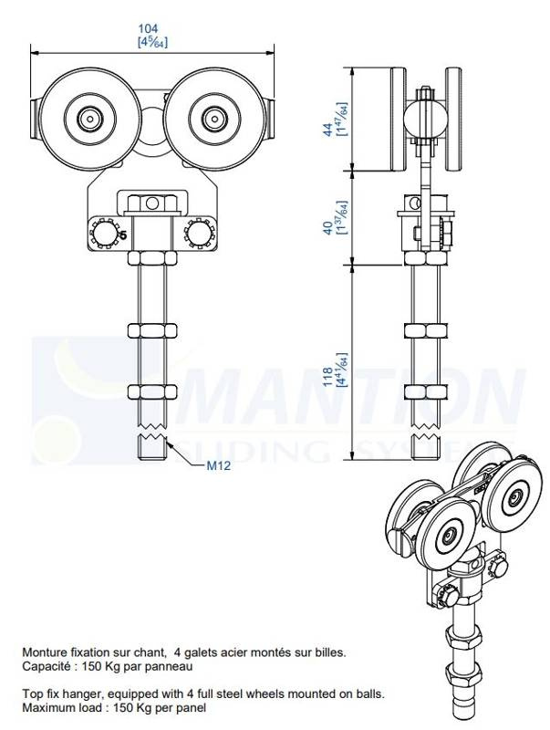- Maksymalna waga skrzydła (2 wózki) 150 kg.