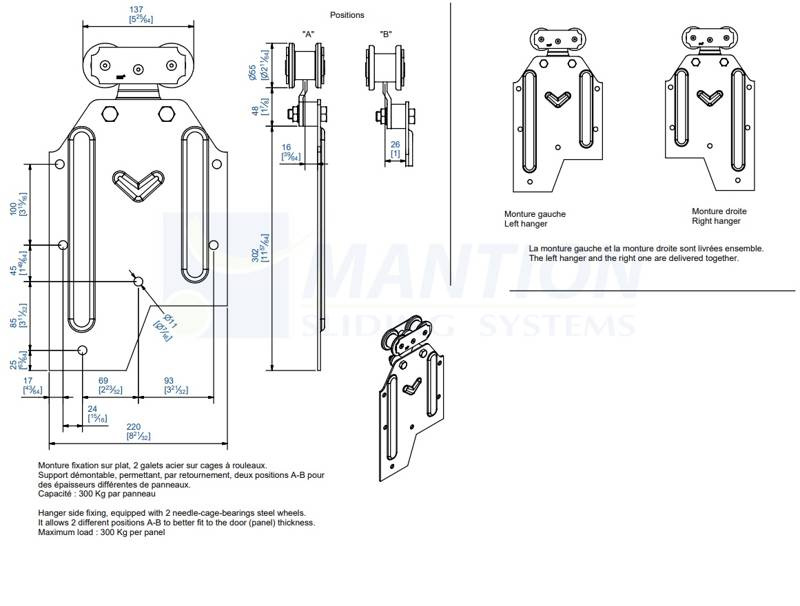 - Maksymalna waga skrzydła (2 wózki) 300 kg.