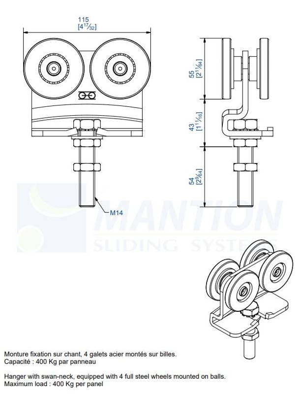 - Maksymalna waga skrzydła (2 wózki) 400 kg.